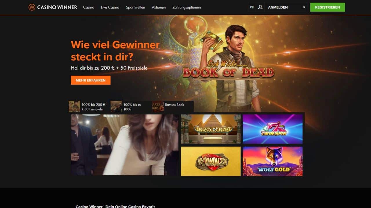 Sie haben vor, sich im Casino Winner zu registrieren oder sind gerade erst ein neues Mitglied in diesem Online-Casino geworden? Dann können Sie im Casino Winner natürlich auch einen Willkommensbonus in Anspruch nehmen. Das Casino gibt Ihnen für Ihre erste Einzahlung auf Ihr Spielerkonto einen Bonus von 100 Prozent bis zu 200 Euro und 50 Freispiele für den berühmten und beliebten Spielautomaten Book of Dead von Play’n GO, bei dem Sie die Schätze des alten Ägypten suchen können. Das hört sich als Willkommensgeschenk doch ganz gut an. Wir erklären Ihnen, wie Sie den Bonus beanspruchen können und welche Bonusbedingungen damit verknüpft sind.