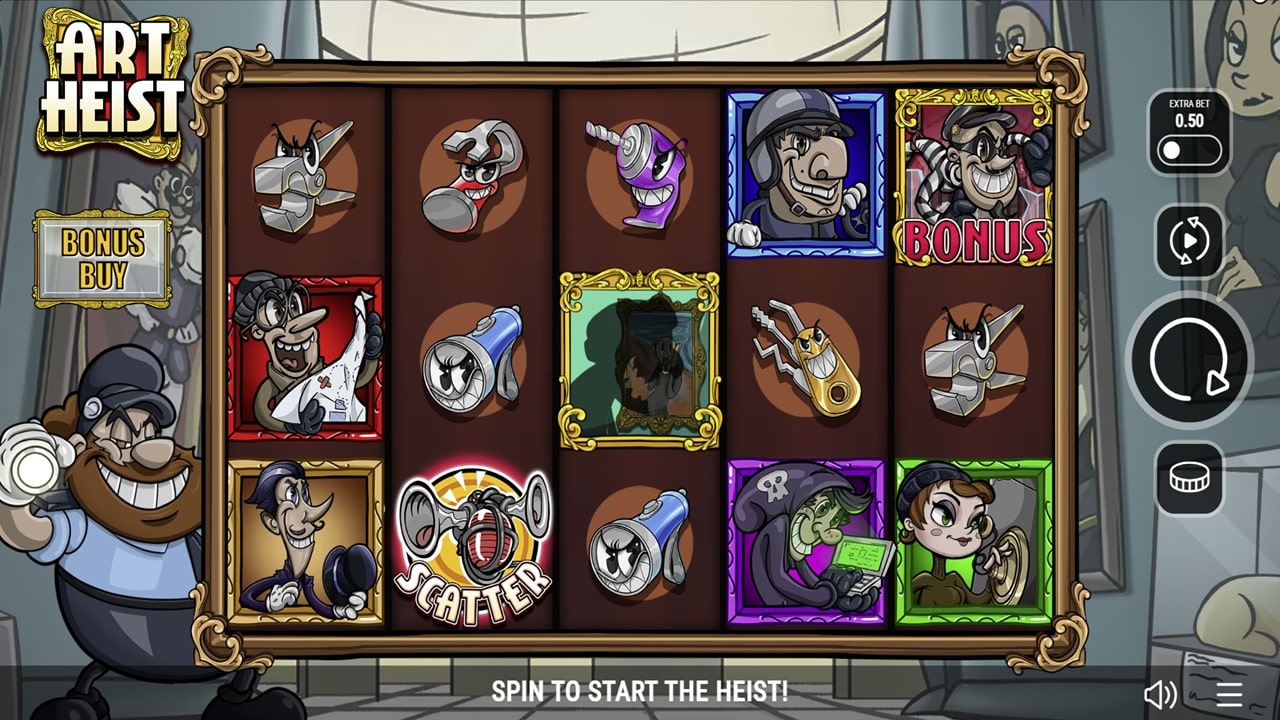 Art Heist combines a comedic theme with a full range of features, making it easy to get into but rewarding enough to stick with. The double scatter system adds variety, with the Rope Descent Bonus delivering instant wins and the Heist Free Spins building towards bigger multipliers. Add in spotlight wilds, retriggers, and a bonus buy option, and this slot delivers plenty of variety for players who enjoy feature-packed gameplay.