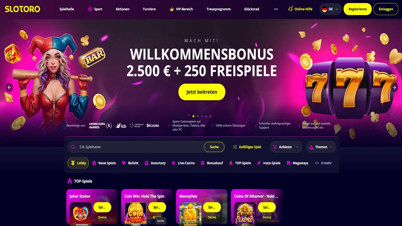 | Casinospiele | NetEnt, NextGen Gaming, Microgaming, IGT, Play’n GO, Yggdrasil Gaming, Merkur, Evolution Gaming, Quickspin, Betsoft Gaming, Elk Studios, Scientific Games |